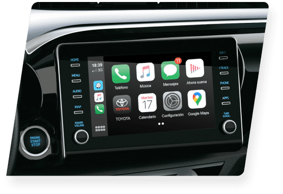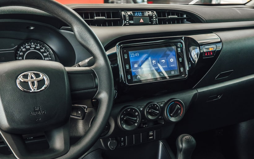 Las versiones SRV y SR de la nueva Hilux están ahora equipadas con un sistema de audio con pantalla táctil de 8” con conectividad: Android Auto® & Apple CarPlay®, y mantienen la función de Bluetooth®.
