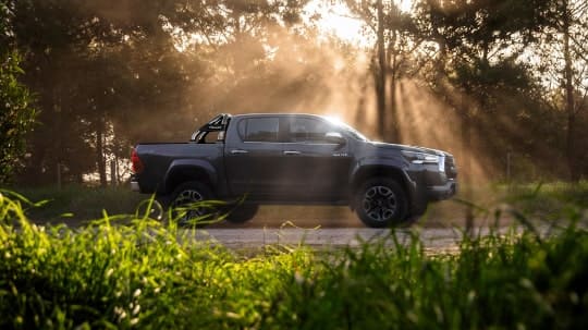 En la parte trasera, la suspensión de eje rígido con elásticos longitudinales y amortiguadores telescópicos por fuera del chasis se complementan, por primera vez en la historia de Hilux, con una barra estabilizadora que contribuye a aumentar la rigidez de rolido y mejorar la trazabilidad en curvas.
