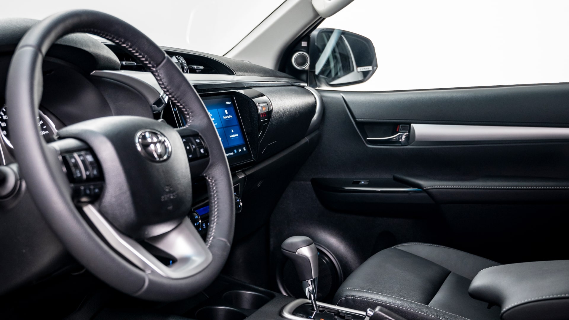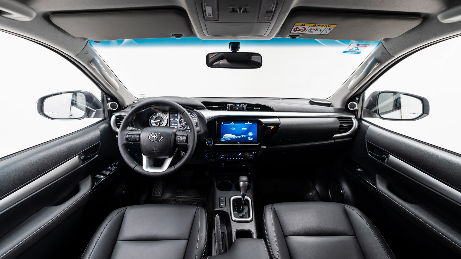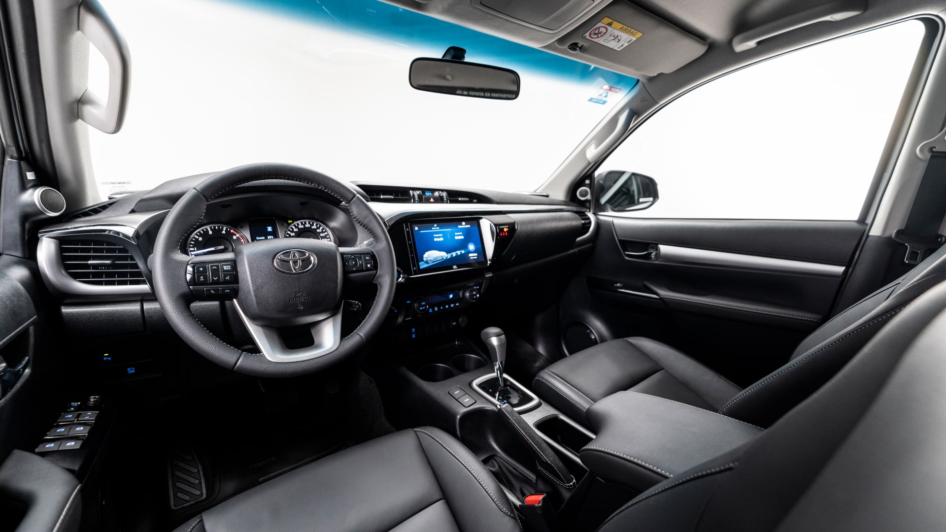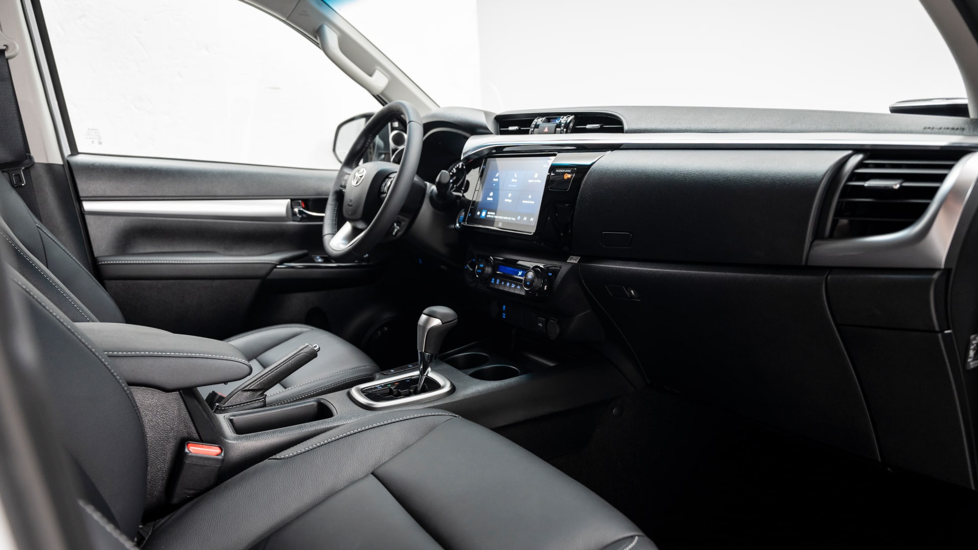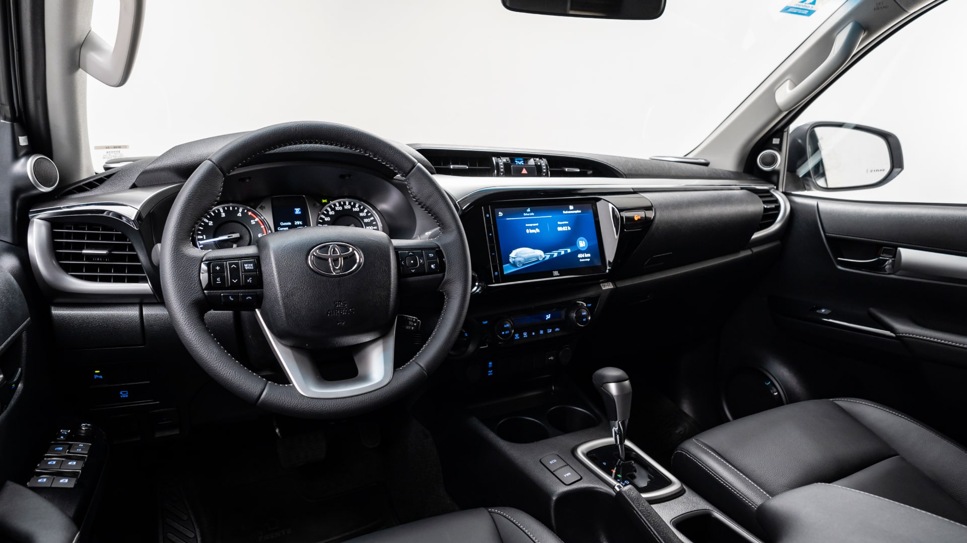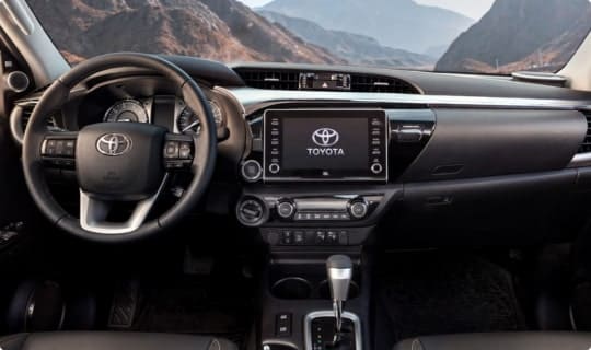 En su interior, la nueva Hilux combina dinamismo y modernidad, integrándose el equipo de audio de manera más fluida al panel de instrumentos.