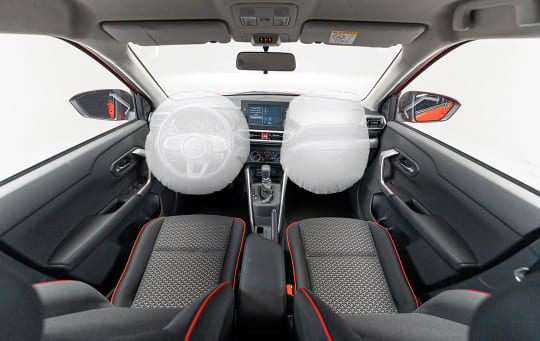La nueva RAIZE cuenta con 2 bolsas de aire y todos los asientos están equipados con cinturones de seguridad ELR de 3 puntos que contribuyen a la protección de los ocupantes.